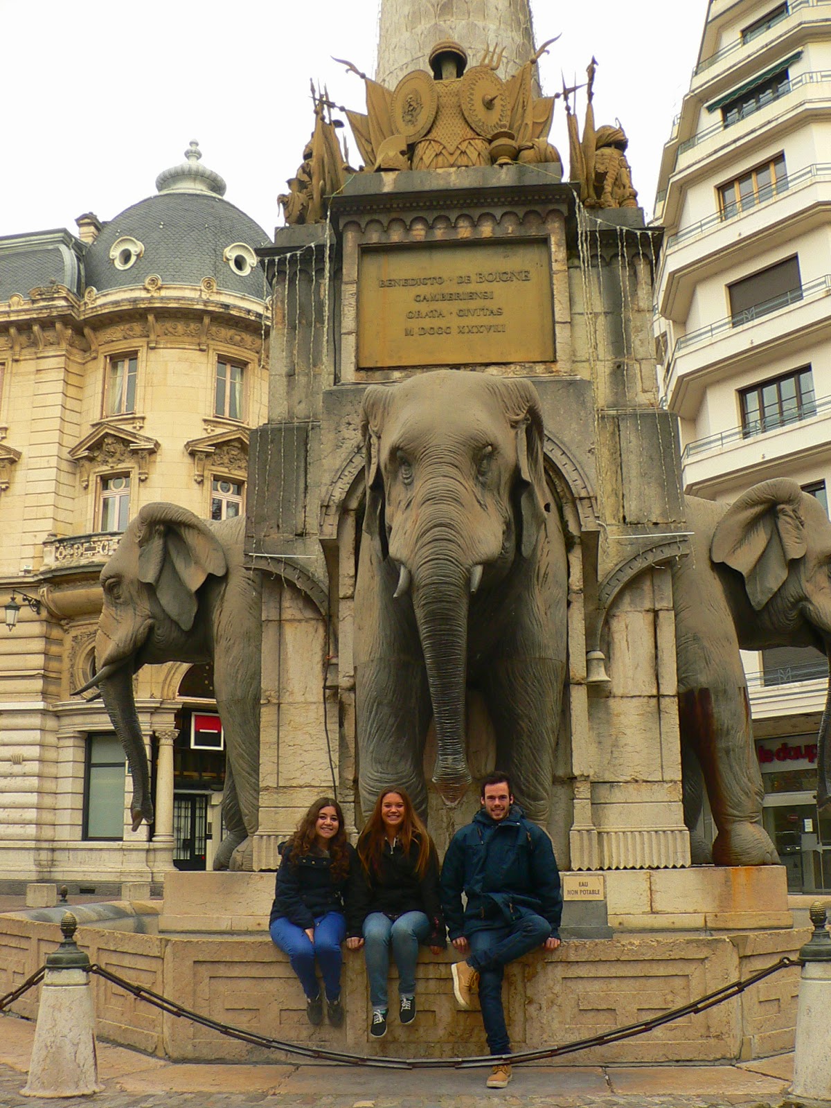 Així que primer, vam anar a la seva residéncia a deixar la maleta i a dinar. A Chambéry, es començava a fer de nit a les 16:30. Així que vam anar a fer un volt pel poble il·luminat per les llums de nadal i vam fer un volt per la zona comercial. A la nit, va arribar un amic nostre que està fent l'Erasmus a Innsbruck, Àustria. El vam anar a buscar, vam sopar, vam anar a prendre la típica cervesa de la regió que es diu Chouffe i vam anar a dormir. Al endemà, vam visitar pel matí Chambéry. Vam veure l'ajuntament, l'església, la plaça del elefants i els carrerons. A la nit, vam anar al Mercat de Nadal del poble, vam prendre una xocolata calenta, vam sopar i a dormir.